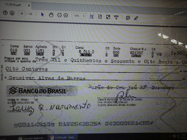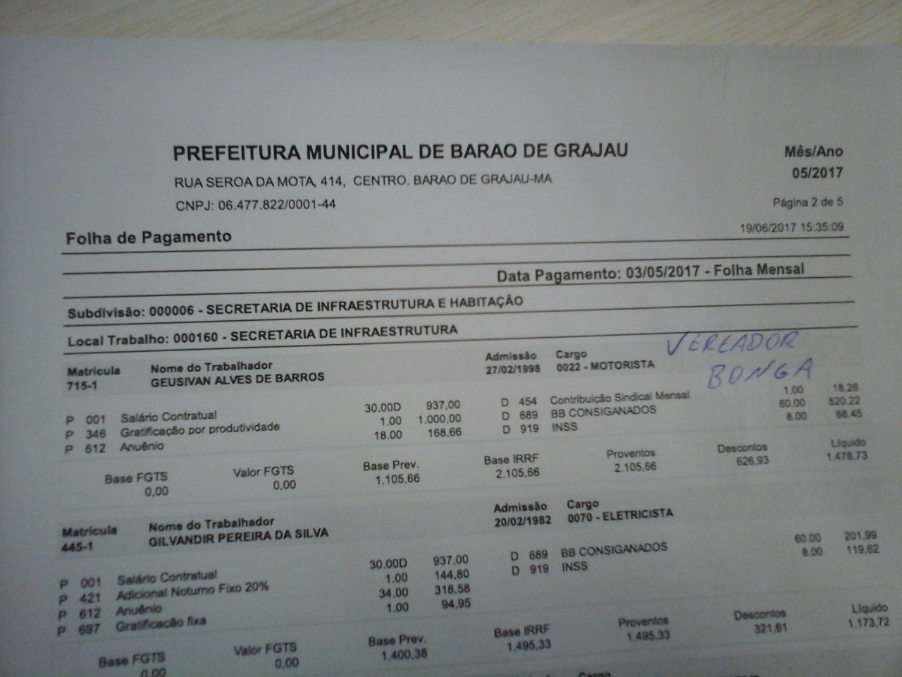 Vereador Geusivan Alves de Barros conhecido como bonga está recebendo pela prefeitura de Barão de Grajaú como servidor publico efetivo e como vereador do município, pela lei o vereador deveria pedir licença como vereador ou como funcionário publico.