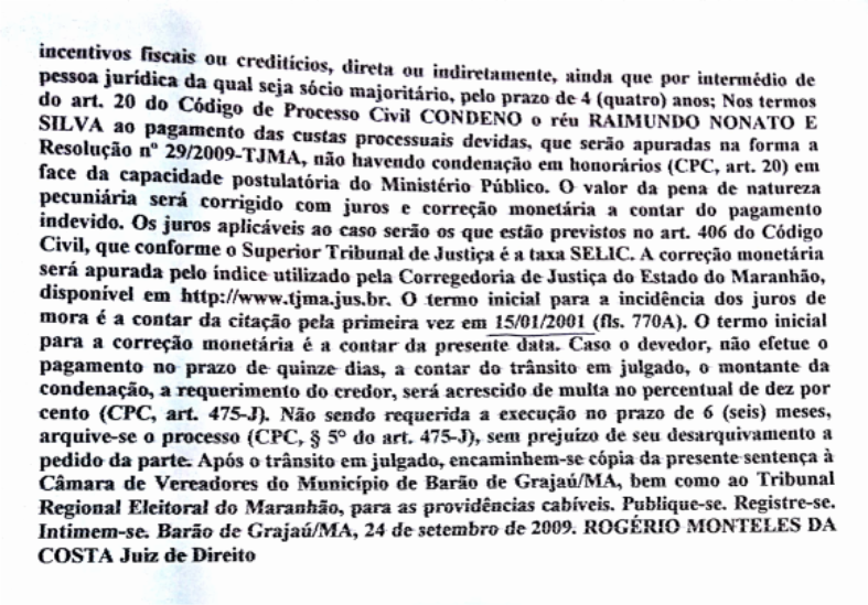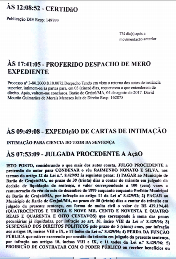 Raimundo Nonato pode ser ate preso de não cumprir o acordo da justiça, Na decisão, divulgada no dia 04 de agosto de 2017, assinada pelo juiz Rogério Monteles da Costa.