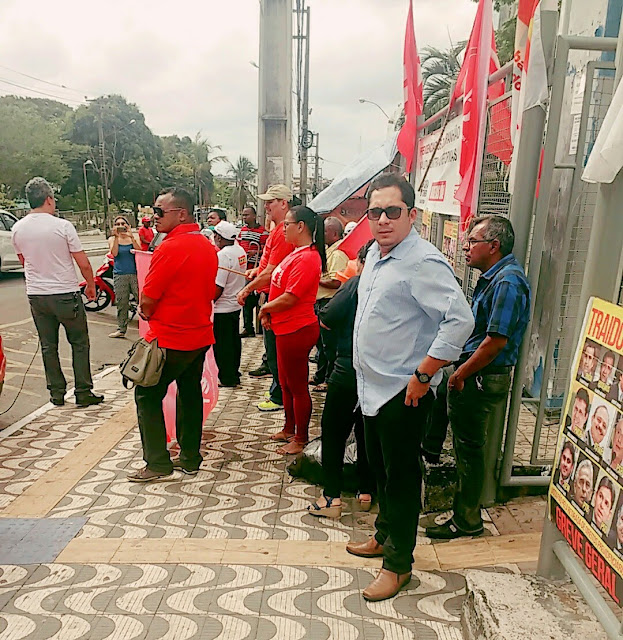 Sindicatos se mobilizam em ato de protesto contra a Reforma da Previdência, em frente ao INSS, na capital maranhense.