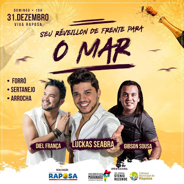 Reveillon é no Viva Raposa. Shows de frente para o mar! Grande queima de fogos para chegada do ano novo