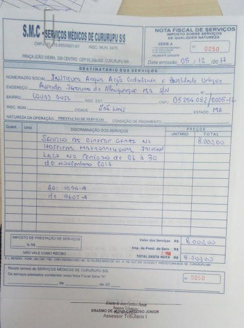 “De acordo com as denúncias que recebemos, é o médico quem assina as requisições de pagamento da sua empresa SMC e, do outro lado do balcão, como Diretor do Hospital de Pinheiro, é quem atesta o pagamento dos serviços de R$356 mil. O diretor do hospital é proprietário de empresa que paga seu próprio salário. Expomos aqui essa denúncia, estaremos encaminhando ao Ministério Público e aguardamos um posicionamento do Governo do Estado do Maranhão, que também responde pelos atos em questão”, disse Wellington. Veja abaixo os documentos que comprovam a denúncia do deputado;