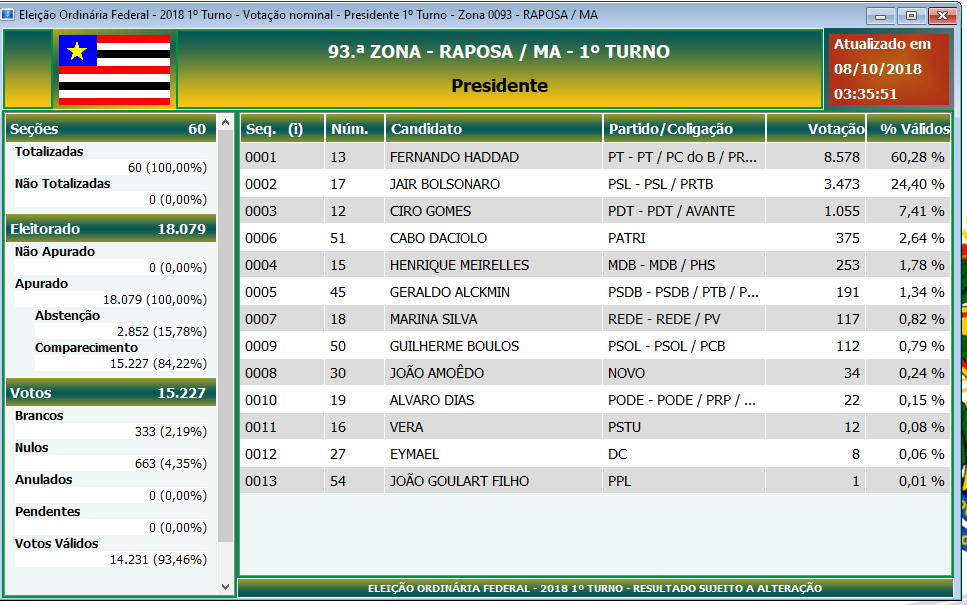 Aqui esta a relação dos candidatos eleitos mais bem votados no município de raposa, e as lideranças que ganharam e perderam.