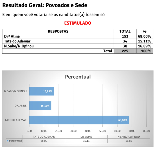 Quando o eleito é perguntado apenas um cenário entre Dra. Aline e Tate do Ademar o resultado :