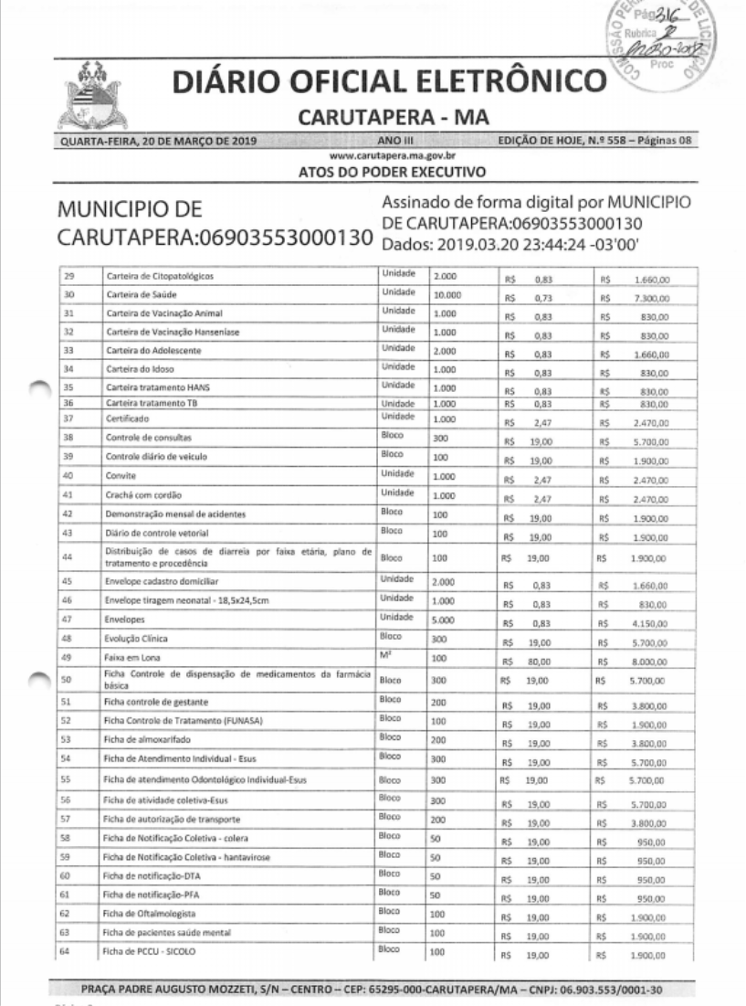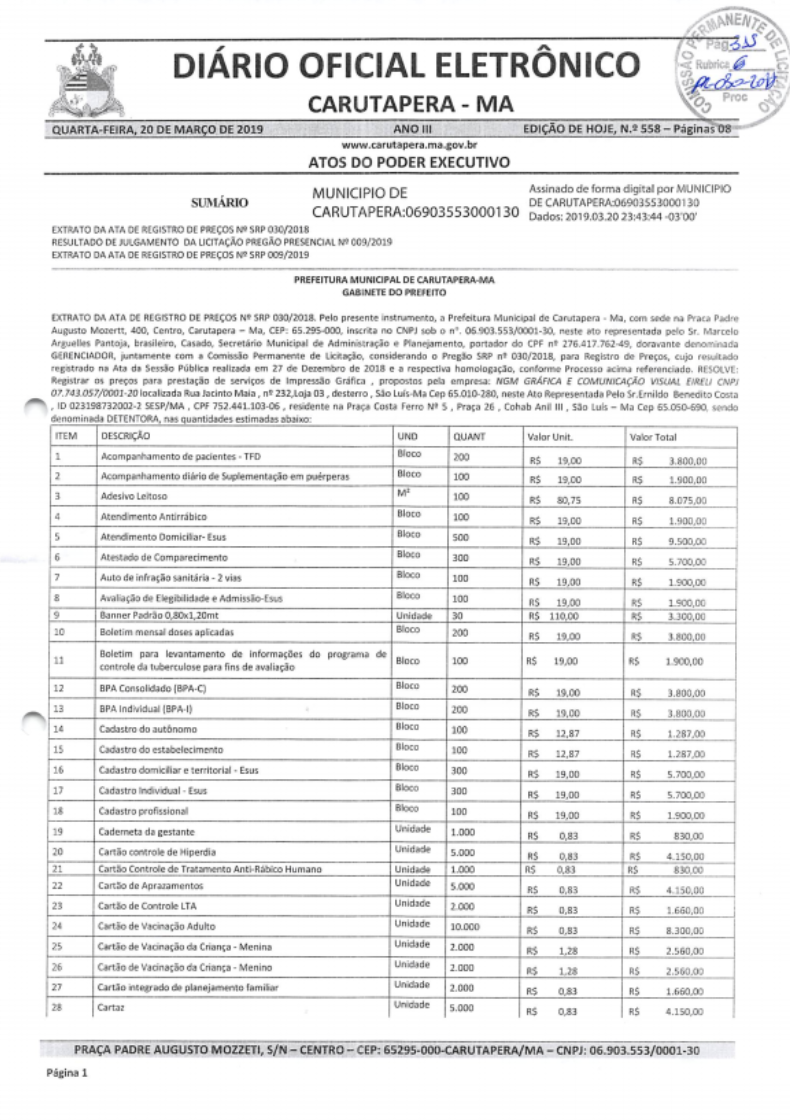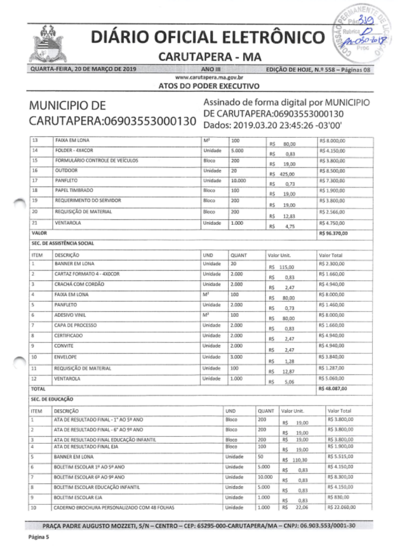 A prefeitura de Carutapera comandada pelo prefeito Andre Dourado vai gastar quase um milhão de reais com o fornecimento de material gráfico.
