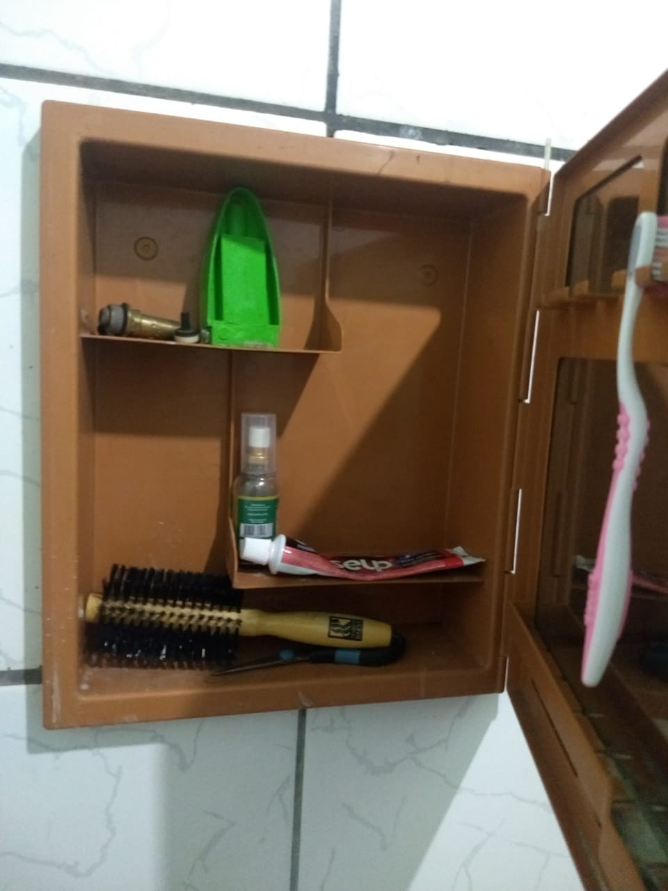 A vítima não registrou a ocorrência por represarias porque a vítima sabe que fez o furto em sua residência que saiu da residência isso foi por volta 8, horas da noite, ao retornar se deparou com banheiro quebrado o basculante arrombado.