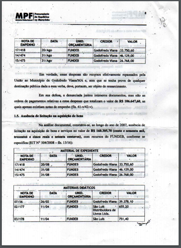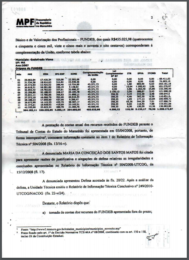 Em sessão realizada no Tribunal de Contas do Estado condenou a ex-prefeita do município de Godofredo Viana, Maria da Conceição dos Santos de Matos, a devolver aos cofres públicos mais de R$ 1,3 milhão.