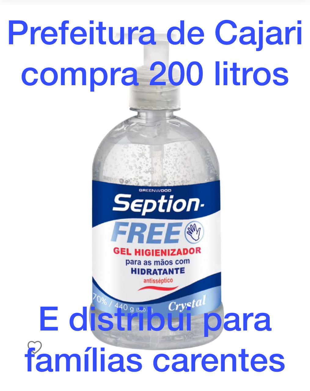 200 litros de álcool gel ( para uma população de quase 20 mil habitantes).