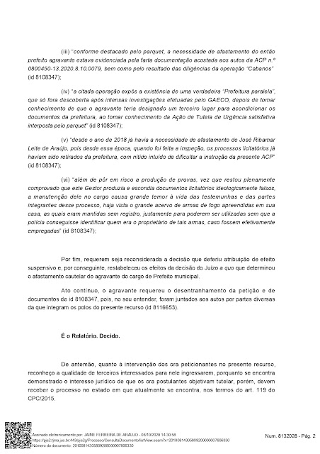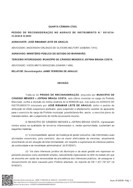 Veja a decisão na Integra, mais uma vez o Jofran Braga perde na Justiça.