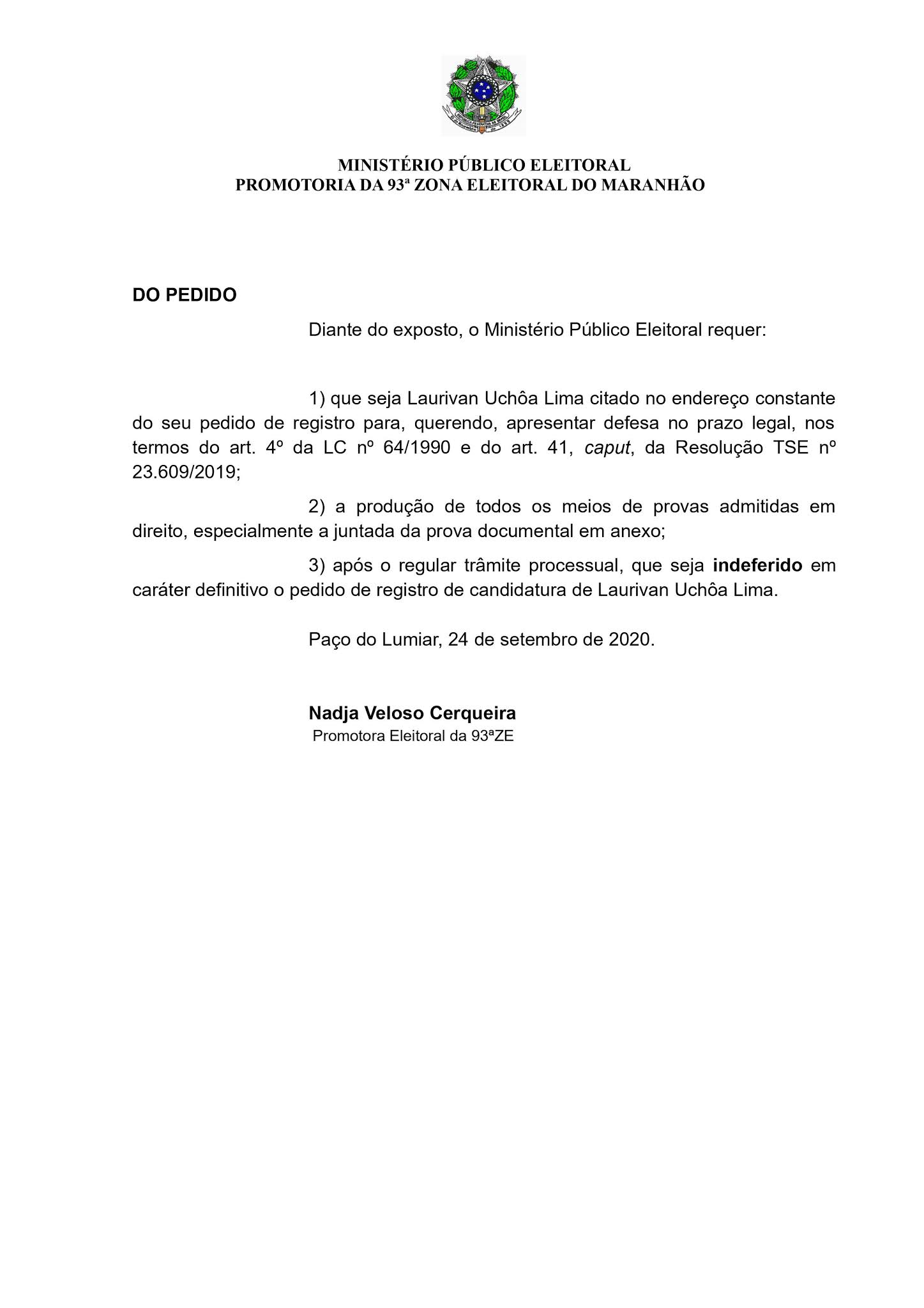 Conforme documentos a redação deste blog, o ministério publico eleitoral solicita, a impugnação do vereador Laurivan do partido republicano de raposa, por uma suposta condenação do artigo 171 no ano de 2013 e 2015, conforme sentença proferida e anexada pela Terceira Câmara Criminal do Tribunal de Justiça do Estado do Maranhão.