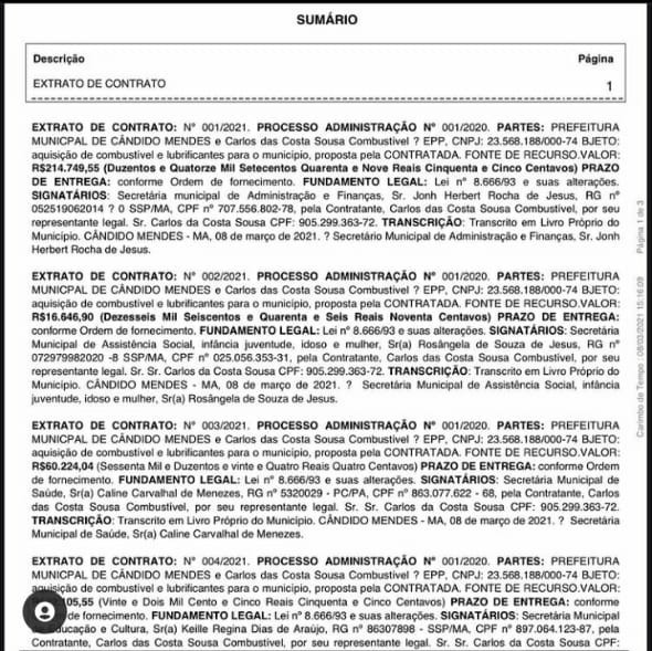 O município de Cândido Mendes contratou por cifras exorbitantes uma empresa inativa perante a receita federal e sem a menor capacidade técnica operacional para fornecer combustível e lubrificantes para a frota de veículos da prefeitura.